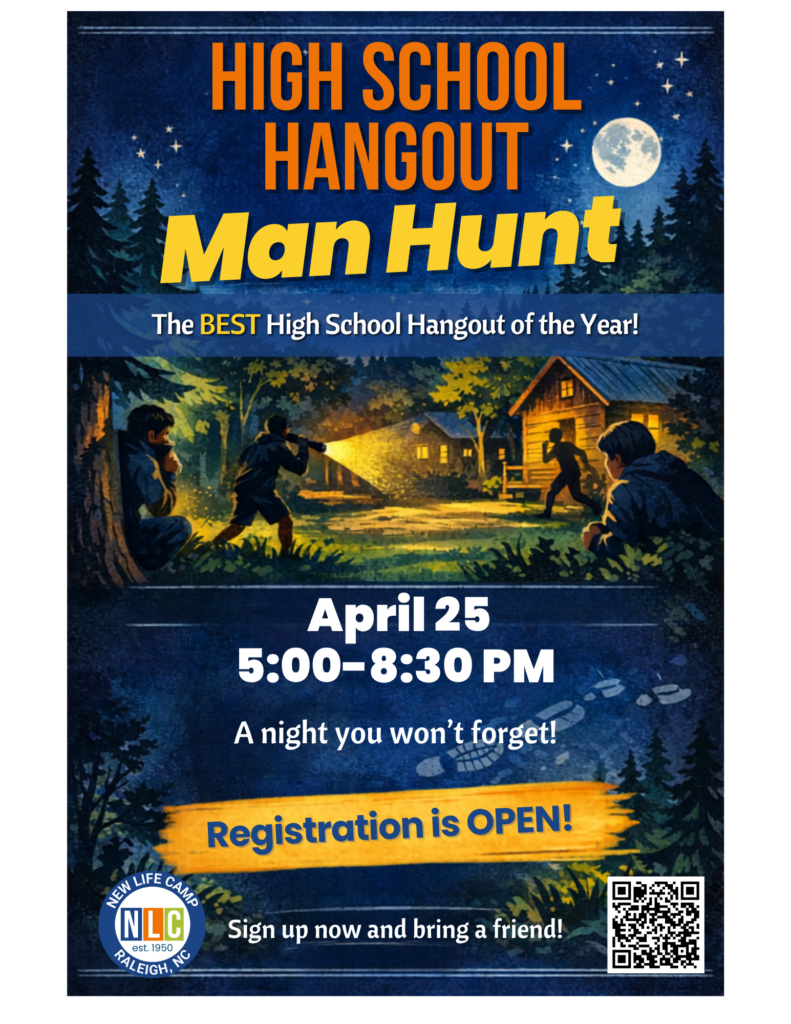 High School Hangout is a monthly night at New Life Camp designed specifically for high school students (9-12 graders) to relax, have fun, and deepen their faith. Teens can bring friends, play games, share a meal, and hear a relevant lesson from God’s Word – all in a welcoming, Christ-centered community where they are known, loved, and invited to belong.